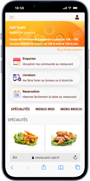 -10% sur toutes les commandes à emporter dès 15€. Livraison à domicile disponible à partir de 10€ le midi et 15€ le soir.